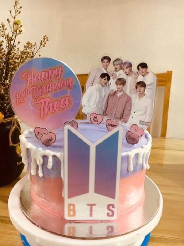 Bánh sinh nhật có hình nhóm nhạc mà bé gái yêu thích. Bố mẹ tâm lý của con đây rồi.
