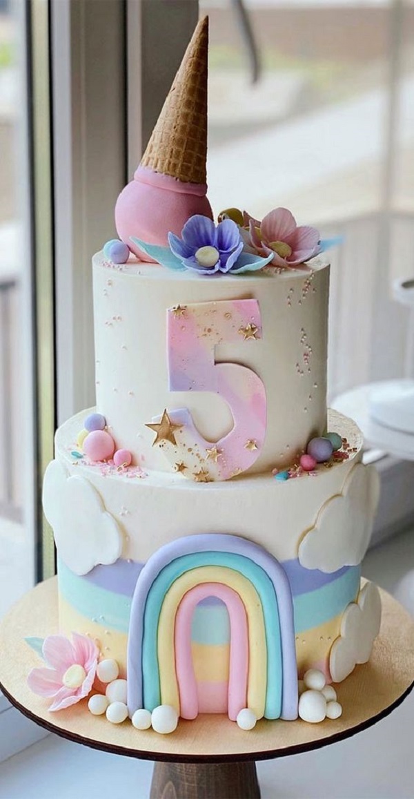 Bánh sinh nhật cầu vồng với sắc màu pastel nhẹ nhàn