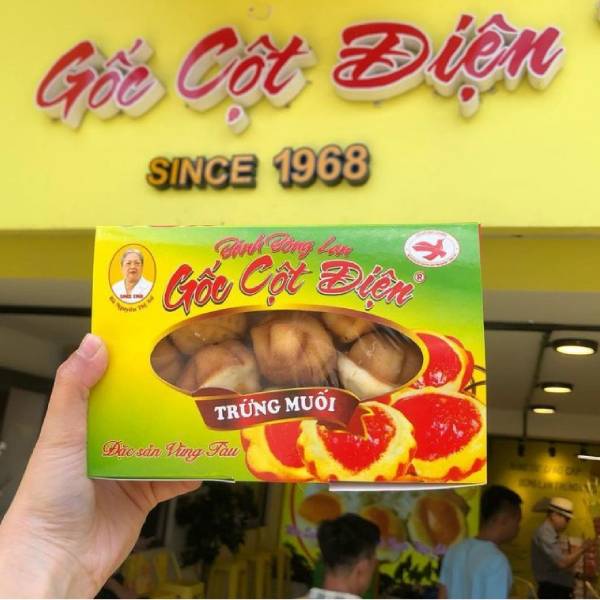 Tiệm bánh Gốc Cột Điện có lẽ là một trong những thương hiệu lâu đời nhất bán bông lan trứng muối tại Vũng Tàu. Đây là một tiệm bánh gia truyền, được xây dựng từ năm 1968, đến nay đã hơn 40 năm. Quán nằm trên đường Nguyễn Trường Tộ, lúc nào cũng tấp nập người mua kẻ bán. Bánh ở đây được đựng trong hộp giấy sang trọng, lịch sự, phù hợp cho khách du lịch mua về làm quà. Cốt bánh bông lan ở đây mềm, không bị khô kết hợp với vị trứng muối mằn mặn, béo ngậy khiến ai nấy đều khó quên!