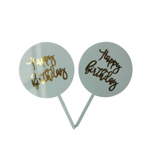 Que cắm topper mica Happy Birthday tròn xanh có hình dáng độc đáo gồm 2 thành phần chữ và que cắm . Bạn sẽ chẳng cần phải suy nghĩ nên trang trí bánh như thế nào chỉ cần cắm que topper mica này là bạn đã có một chiếc bánh xinh xắn, ấn tượng cho người thân hay bạn bè rồi đó!