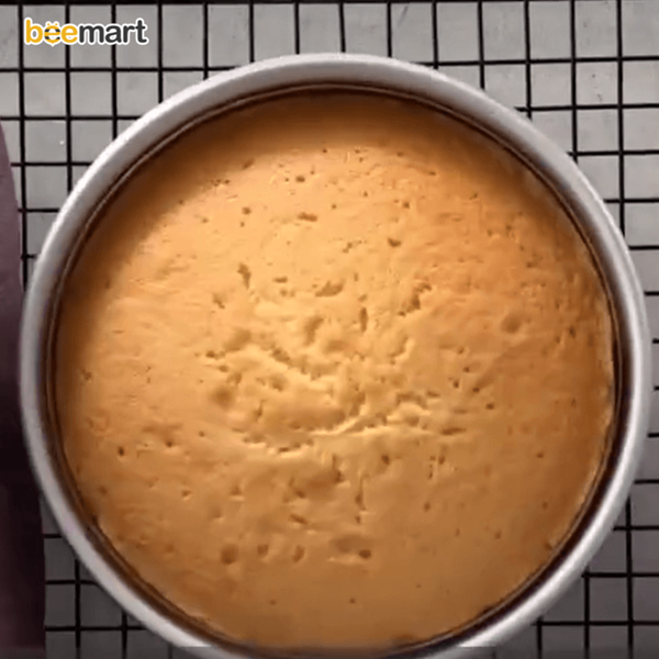 - Lấy khuôn ra khỏi lò, úp ngược khuôn và nhấc bánh ra để lên một tấm rack để nguội