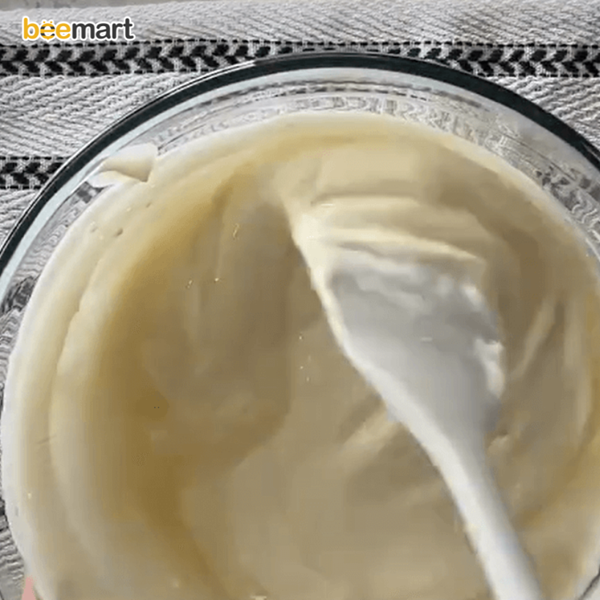 - Thêm 280g sữa chua không đường, trộn đều đến khi hỗn hợp hòa quyện.