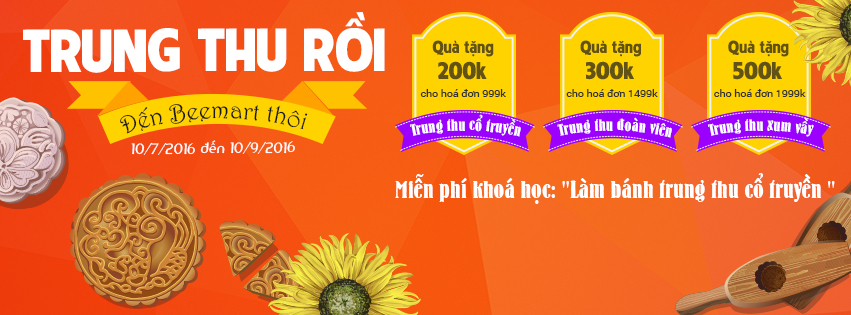 Chiến dịch “Trung thu rồi đến Beemart thôi" đã bắt đầu khởi động với rất nhiều chương trình hấp dẫn cùng vô vàn quà tặng bạn đừng bỏ lỡ. Khi tham gia mua đồ làm bánh tại Beemart, các bạn có cơ hội nhận nhiều combo quà tặng trung thu hấp dẫn giúp bạn làm ra những chiếc bánh trung thu đẹp mắt. Các bạn sẽ được tham dự các lớp làm bánh trung thu truyền thống miễn phí do Beemart hướng dẫn. Ngoài ra bạn còn có cơ hội giành nhiều giải thưởng hấp dẫn và giá trị khi tham gia cuộc thi “Chiếc bánh đoàn viên – Trung thu của bạn". Còn chần chừ gì nữa, Trung thu rồi đến Beemart thôi !