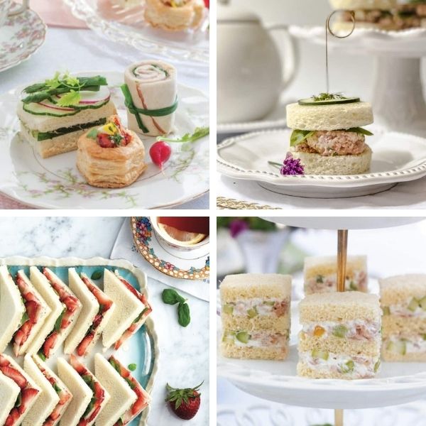Bánh sandwich trong tiệc trà chiều được cắt nhỏ thành từng miếng vừa ăn