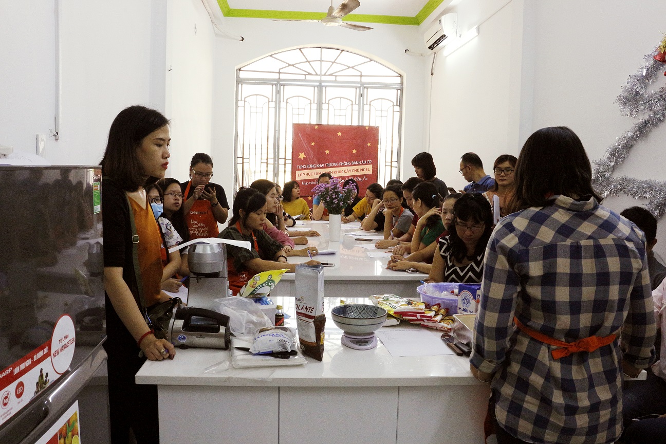 Đến với Workshop học viên sẽ được giới thiệu và hướng dẫn lý thuyết làm bánh cơ bản, hướng dẫn nướng cốt bánh cuộn, cách đánh kem topping mịn màn, bông xốp, cách pha màu, và trang trí một chiếc bánh khúc cây hoàn hỉnh.
