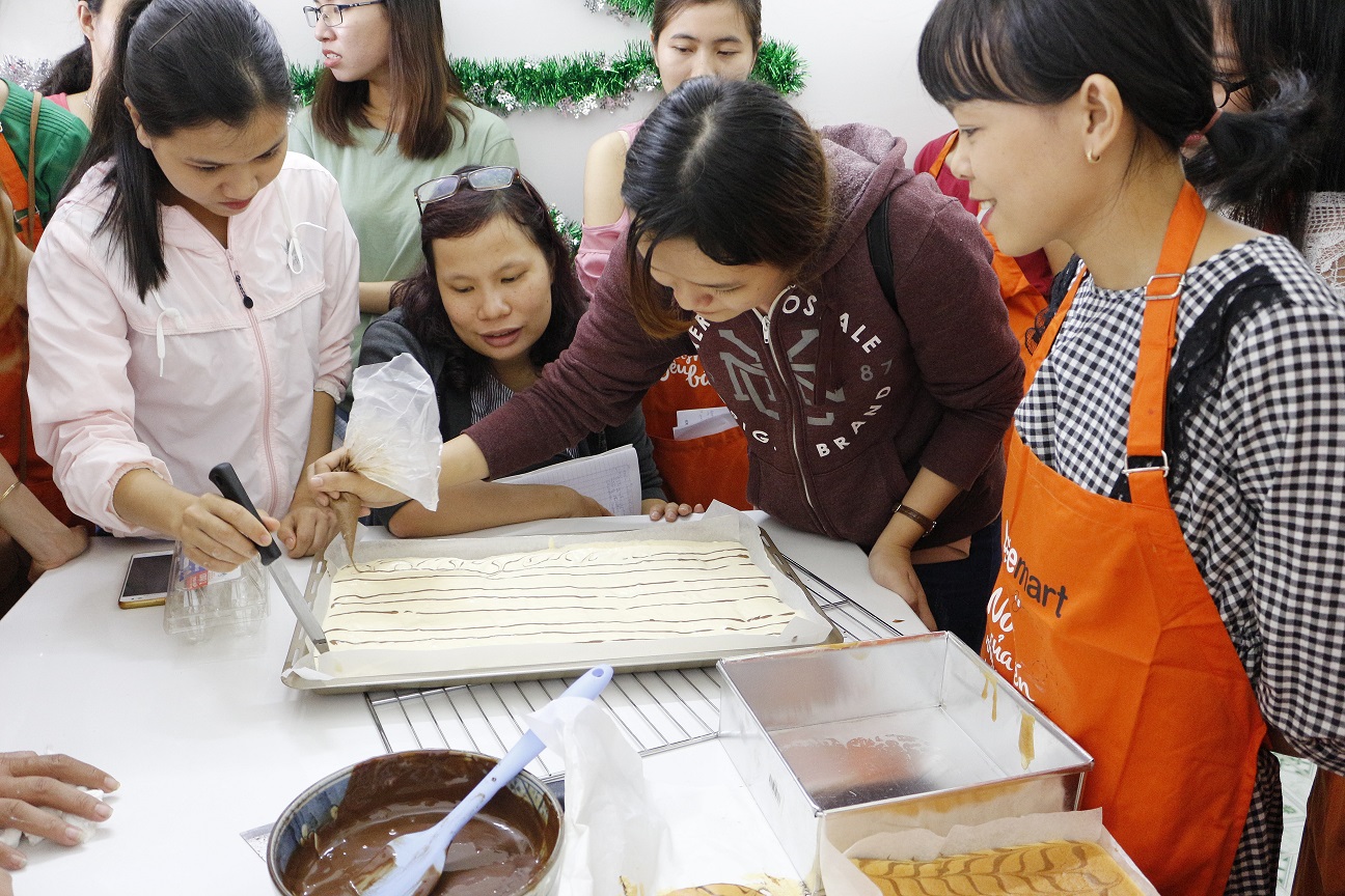 Sau một buổi thực hành miệt mài, cuối cùng các học viên cũng hoàn thành chiếc bánh khúc cây của mình một cách xuất sắc. Nhìn những thành phẩm trên tay, mọi người đều đã rất vui và hy vọng có thêm các lớp học khác để mọi người có thể giao lưu và chia sẻ cùng nhau nhiều hơn nữa.