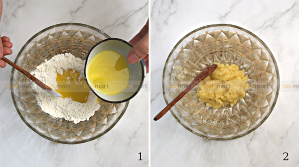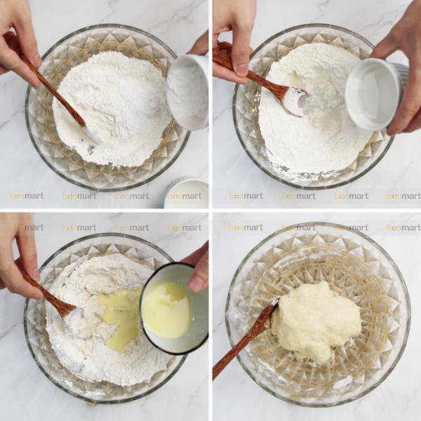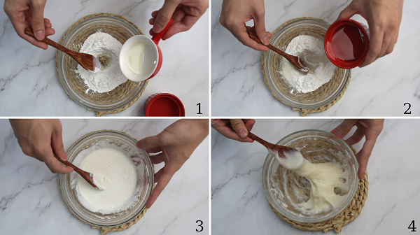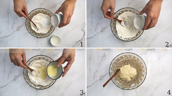 1. Trộn nguyên liệu làm phần vỏ bánh ngàn lớp: