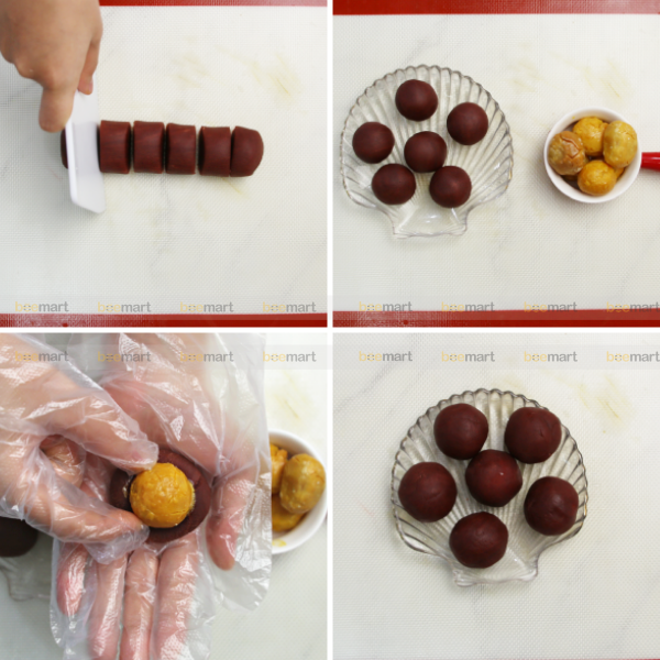 Bước 7: Bao nhân đậu đỏ trứng muối